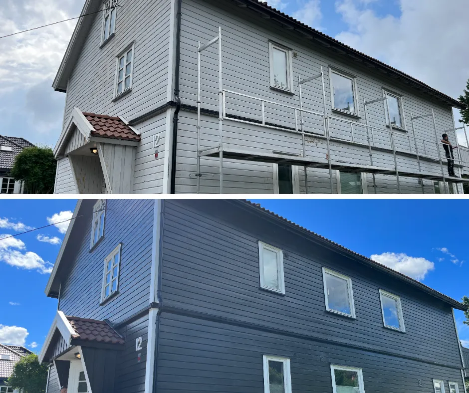 Forvandle og beskytt fasaden med profesjonell maling. Vi hjelper deg å finne riktige produkter og farger, og sørger for en jevn, flott og holdbar overflate.